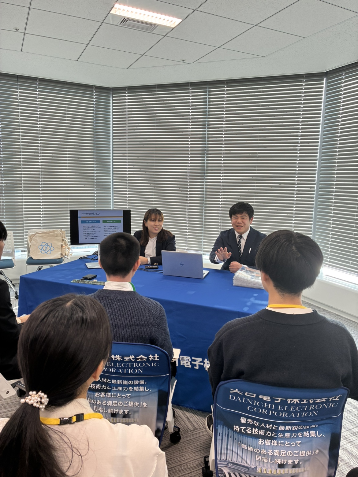 いざ 千年続く会社へ 時代のニーズに合わせて、時に実直に、時に大胆に 挑戦できる環境ならここにある これからの大日をつくるのは君だ 大日でしかできない挑戦を共に さぁ、集え開拓者 TOP MESSAGE MOVIE動画 サンテレビCM公開中 大日通信工業株式会社 大日通信工業株式会社 【お父さんの仕事編】30秒ver. 大日通信工業株式会社 【千年企業を目指す編】15秒ver. News & Topics新着情報 MORE 2026/01/28 27年卒冬季インターンシップ開催中!ぜひマイナビよりご予約下さい。 2025/12/09 「企業・大学・学生マッチング in HIMEJI 2025」に出展しました! 2025/11/17 今年も吉森社長より「新米」をいただきました!! ABOUT大日グループを知る 数字とキーワードで見る大日グループ MORE 通信設備の施工から保守まで大日通信工業 電子機器や情報通信機器の製造大日電子 CROSS TALK座談会 大日電子 大日通信工業 INTERVIEW働く先輩の声 大日通信工業、大日電子、それぞれの環境で働く社員の声を集めました。 MORE 社会システム統括部 第一プラント建設部 O.Tさん 2014年入社 開発部 ソリューション開発課 Y.Rさん 2019年入社 電設部 Y.Yさん 2018年入社 第三事業部 製造部 製造一課 H.Kさん 2019年入社 社会システム統括部 第二プラント建設部 M.Mさん 2020年入社 製造部 実装課 Y.Tさん 2015年入社 第三事業部 製造部 品質管理課 S.Kさん 2020年入社 電設部 K.Aさん 2021年入社 製造管理部 生産革新G H.Kさん 2021年入社 MORE 人が育つから企業が育つ。 企業をつくるのは人です。その”人”が育たなければ企業の成長はありません。 だからこそ、大日グループは従業員ファースト。 「成長したい」という意欲ある従業員を全力でサポートします! もちろん、仕事の充実には家庭やプライベートも大切。 なので、福利厚生や家族へのフォロー体制も充実しています。 大日グループの仕事環境 採用担当者からのメッセージ就職活動中の皆さんへ MESSAGE 集え、開拓者 大日グループが目指すのは“千年続く会社” 千年続く会社になるために 現状維持を続けているだけではいけない。 時代に応じた成長をし続けなければ。 新しいことに挑戦する人間 それを私たちは開拓者と呼ぶ。 一緒に“千年続く会社”を作る開拓者を大日グループは求めている。 共に挑戦し 成長していこう さぁ 集え。大日流 開拓者 募集要項大日通信工業株式会社・大日電子株式会社の募集要項はこちら エントリー採用ご応募、求人に関するご質問、会社見学はこちら